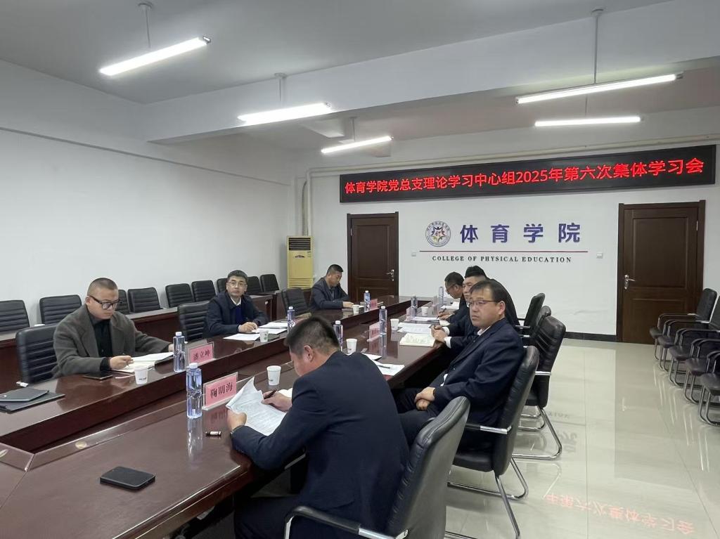 为深入学习贯彻党的二十届四中全会精神,全面落实学校2025年党政工作要点部署,凝聚学院高质量发展共识,11月5日下午,体育学院党总支在体育馆105会议室召开2025年理论学习中心组第六次集体学习会。学习会由党总支书记崔建民主持,学院党总支理论学习中心组成员参加学习。学校纪委书记孙永刚、信息工程学院党总支副书记彭传杰、纪委办公室潘立坤列席会议。